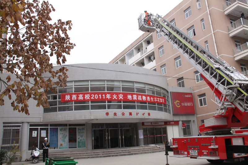 “陕西高校火灾、地震疏散逃生示范演练”火灾演练在长安校区学生公寓顺利举行
