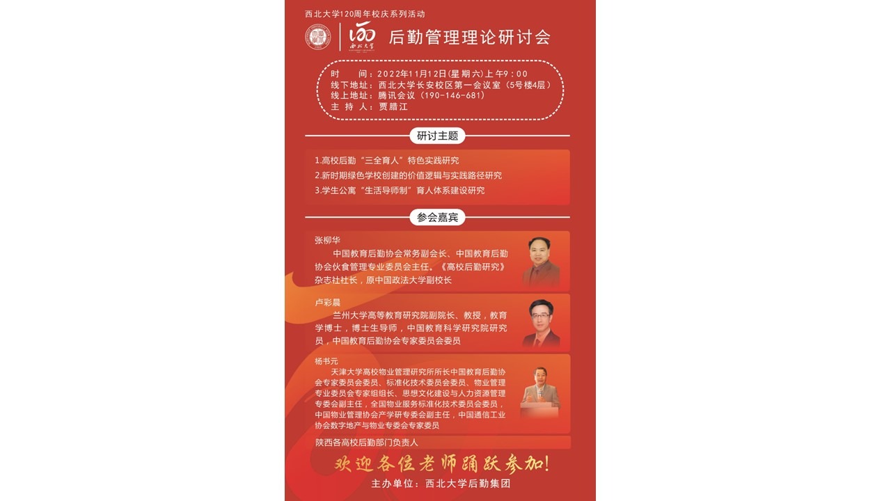【会议预告】后勤理论研究研讨会暨西北大学120周年校庆系列活动