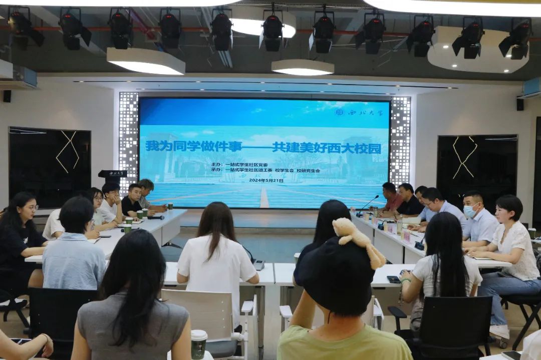 5月21日,由后勤集团党委发起,“一站式”学生社区党委主办、“一站式”学生团工委、校学生会、研究生会承办的“我为同学做件事——共建美好西大校园”座谈会(后勤专场)在长安校区举行。“一站式”学生社区党委副书记、后勤集团党委书记宁岗,“一站式”学生社区党委副书记、校团委书记刘博,心理健康教育中心常务副主任张向强,公寓管理中心主任樊卫东、饮食服务中心副主任丁现晶、后勤集团办公室副主任封文宇出席会议。各公寓楼宇和院(系)学生代表、爱校巡校志愿者团队代表、校学生会、研究生会代表20余人到场参加了活动。会议由校学生会执行主席刘艺婷同学主持。